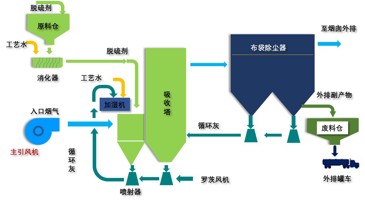 密相干塔脫硫除塵一體化技術(shù)主要由:密相塔系統(tǒng)、除塵系統(tǒng)、原料系統(tǒng)、副產(chǎn)物運(yùn)輸儲(chǔ)存系統(tǒng)、工藝水系統(tǒng)、提升風(fēng)系統(tǒng)、煙氣系統(tǒng)等分系統(tǒng)組成。